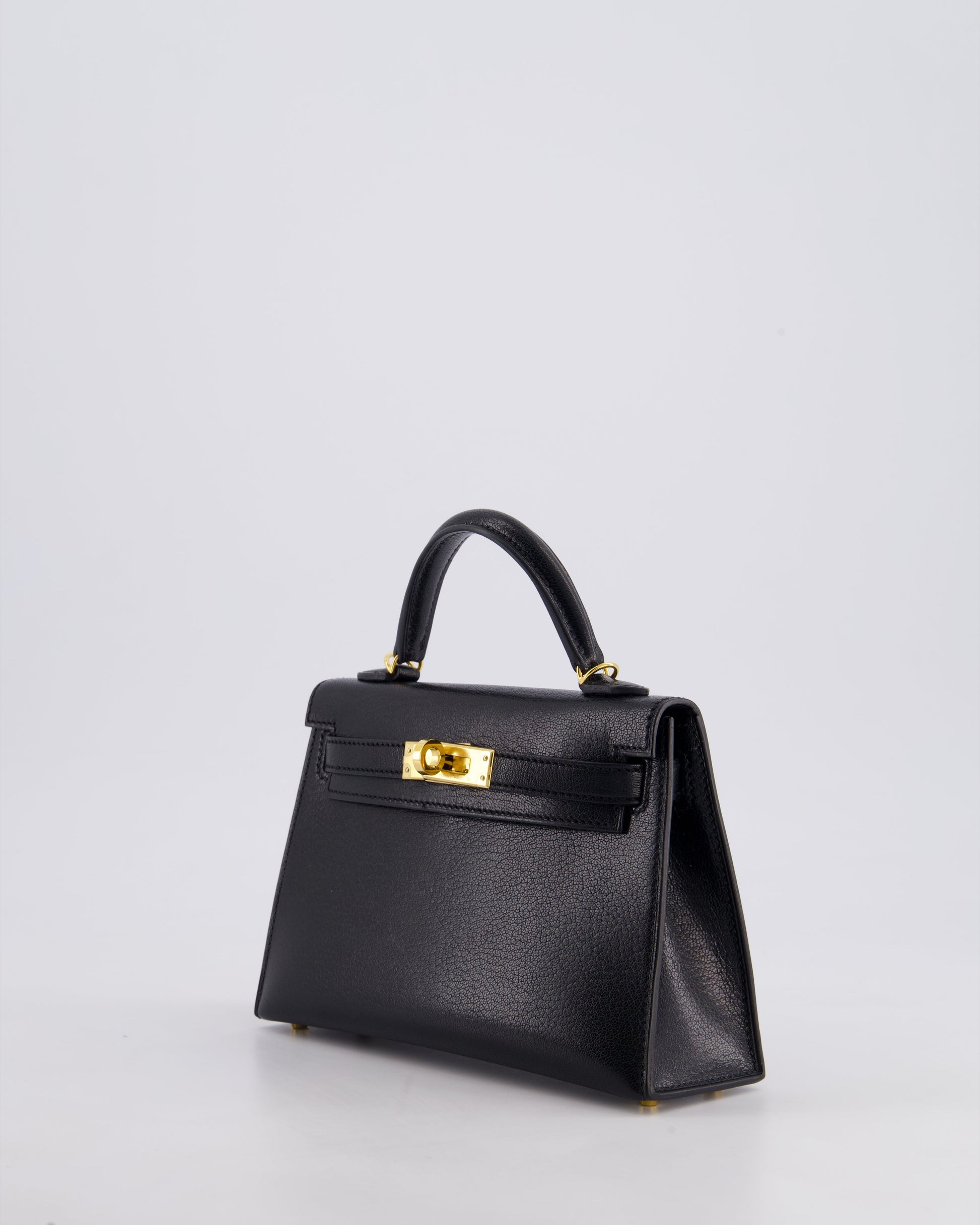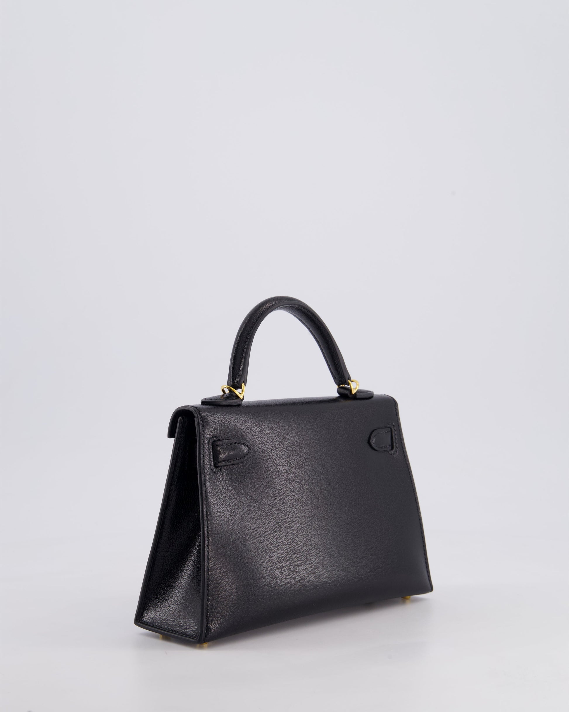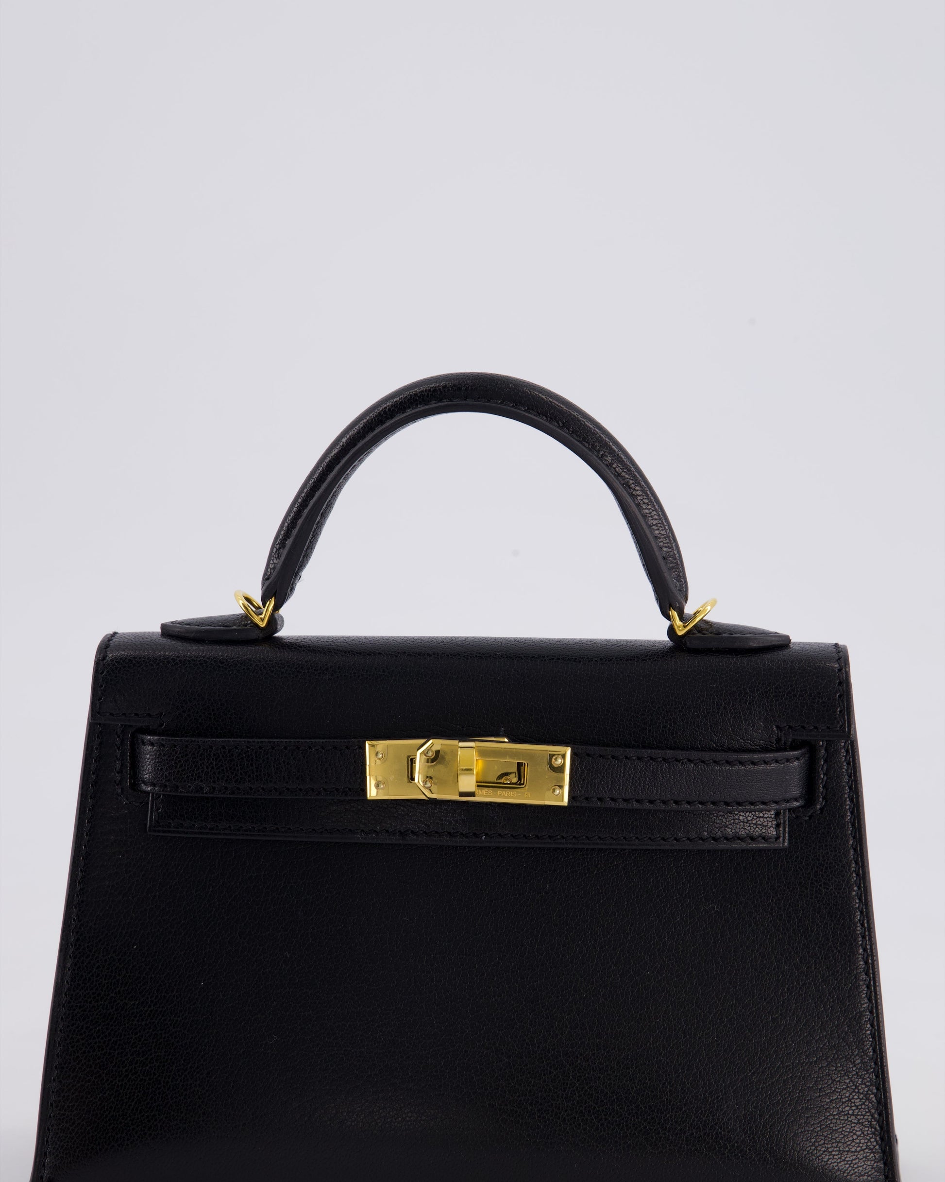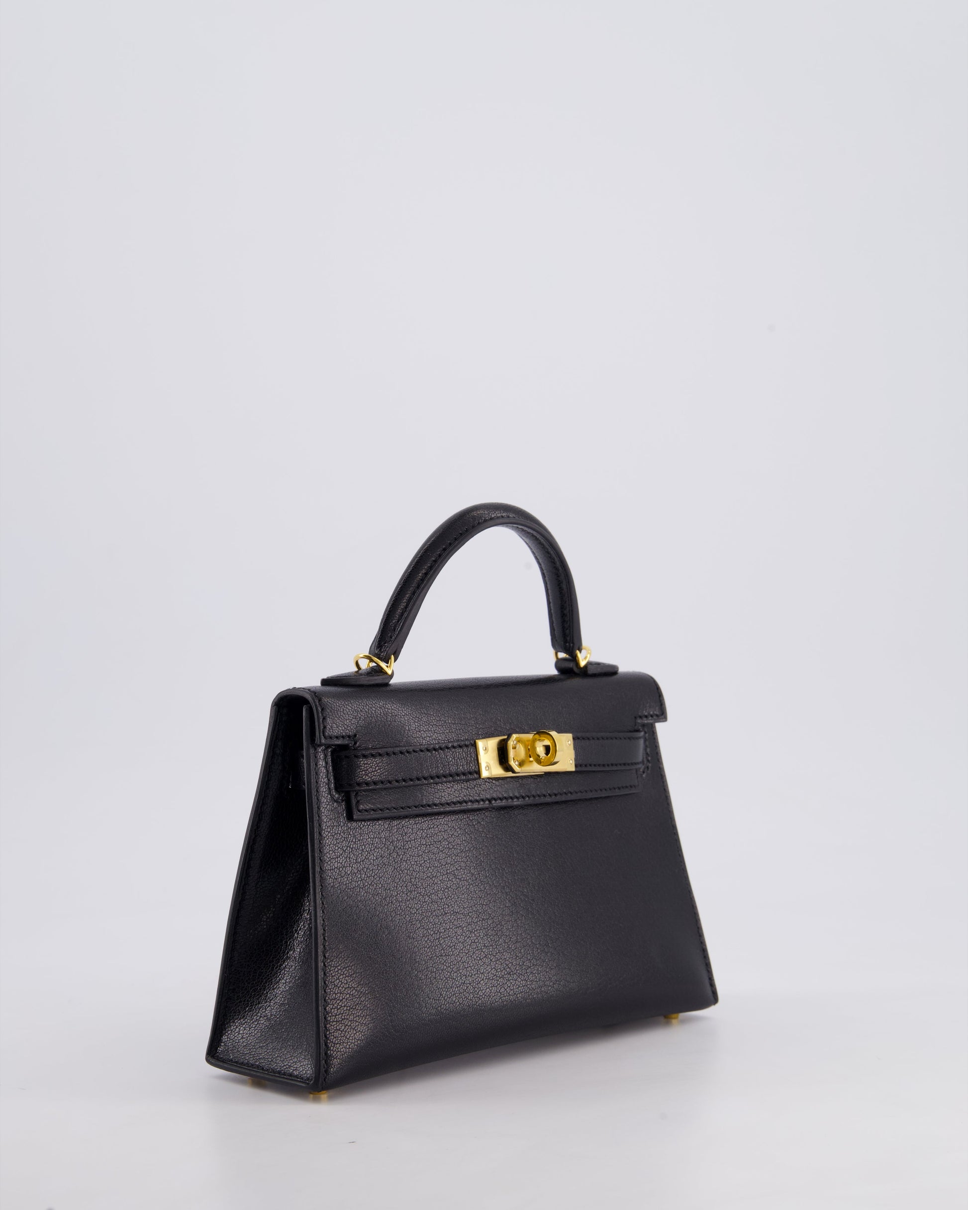 *HOT* Hermès Mini Kelly II 20cm Bag In Black Chèvre Chamkila Leather with Gold Hardware