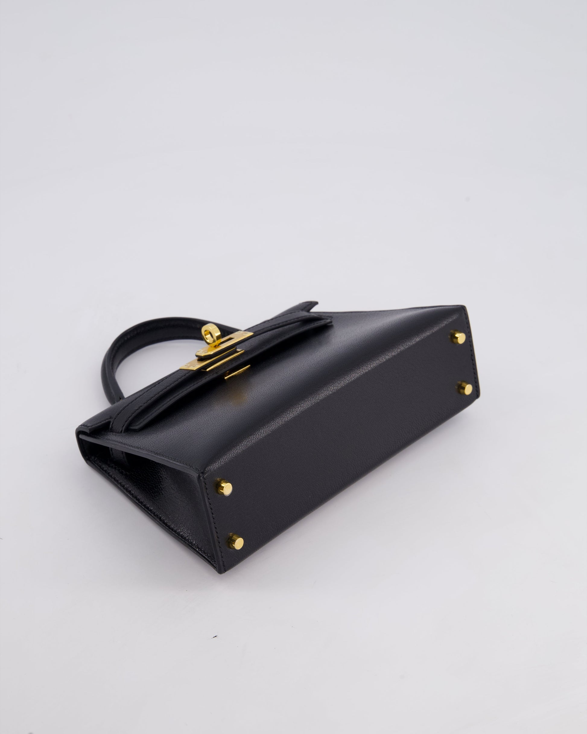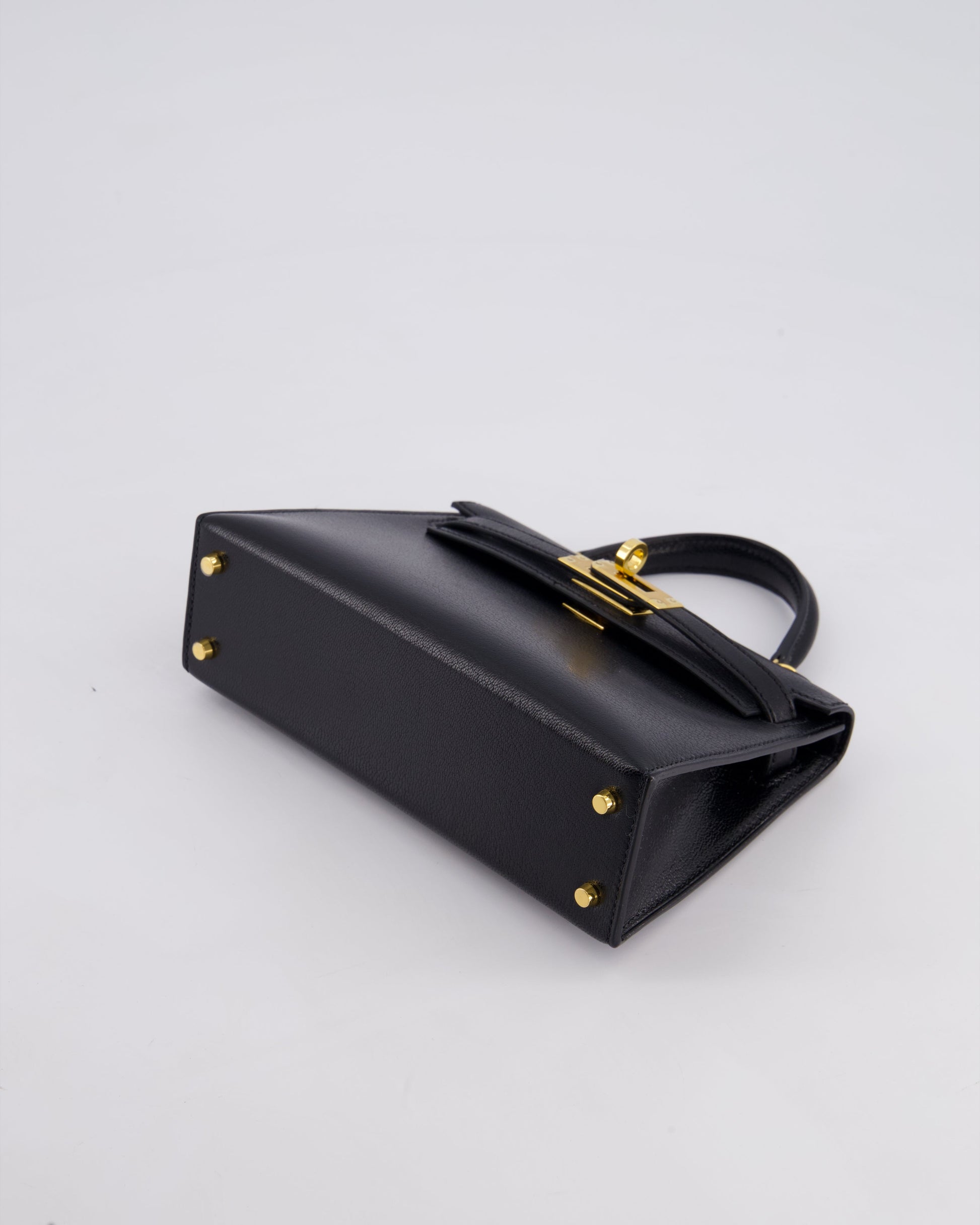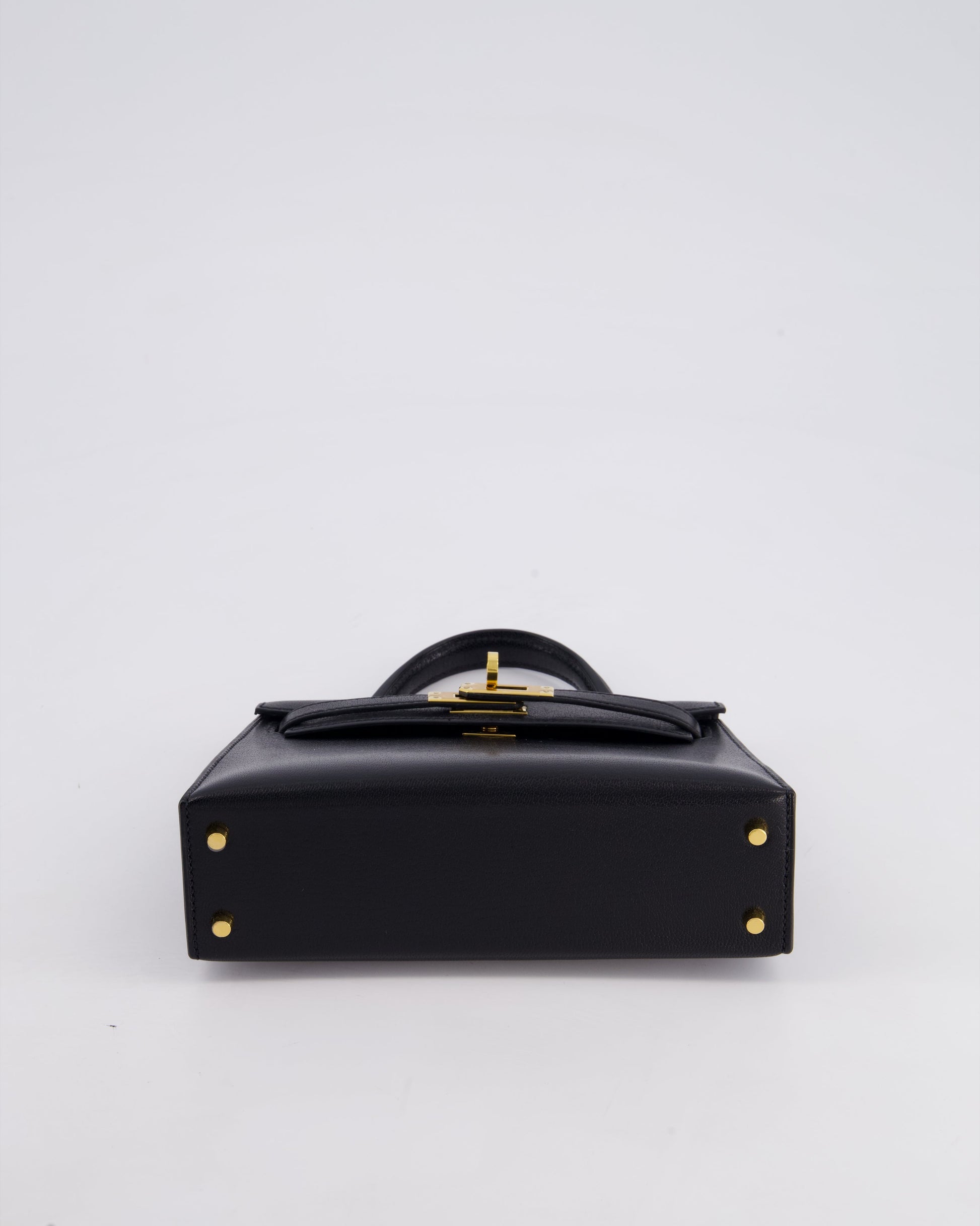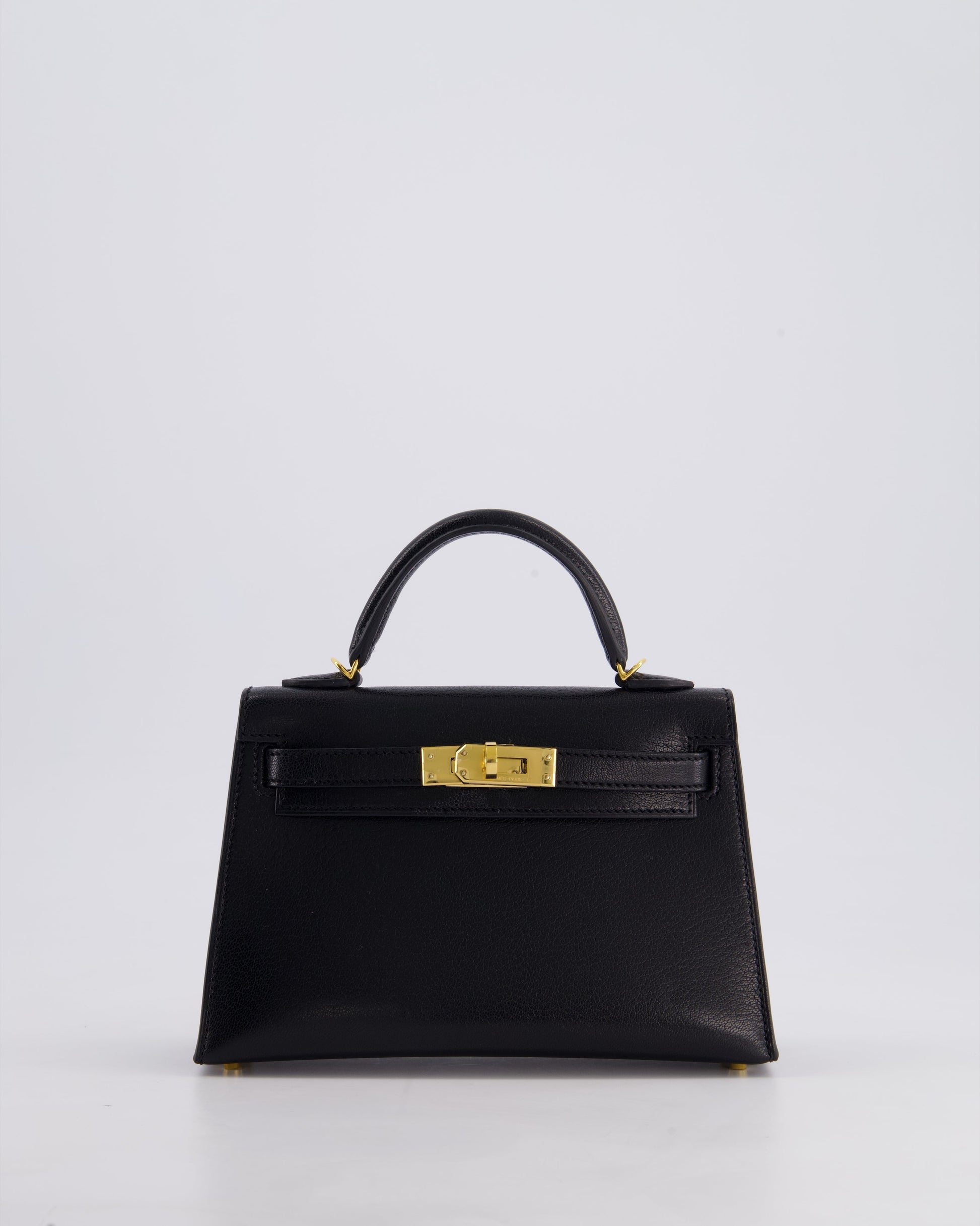 *HOT* Hermès Mini Kelly II 20cm Bag In Black Chèvre Chamkila Leather with Gold Hardware