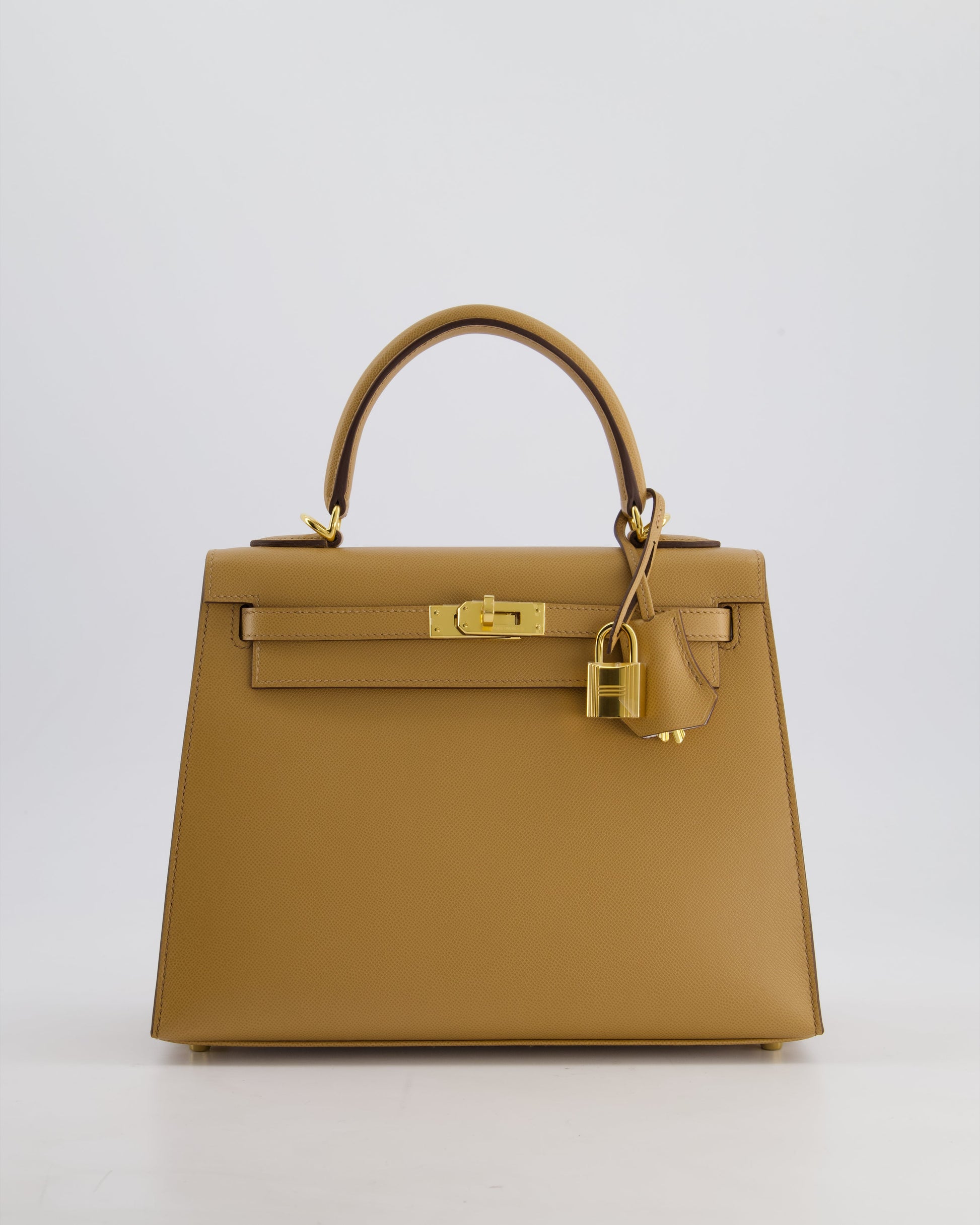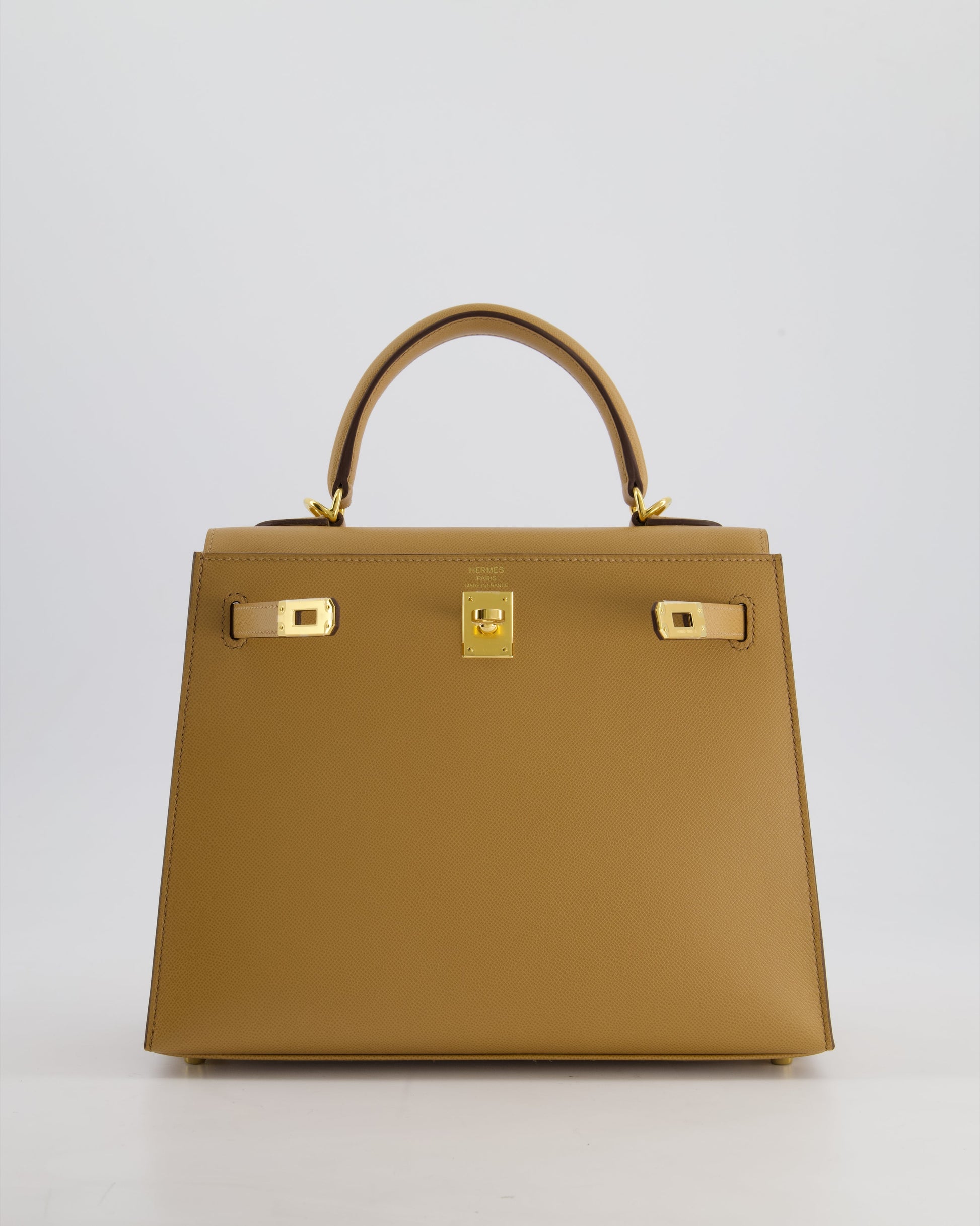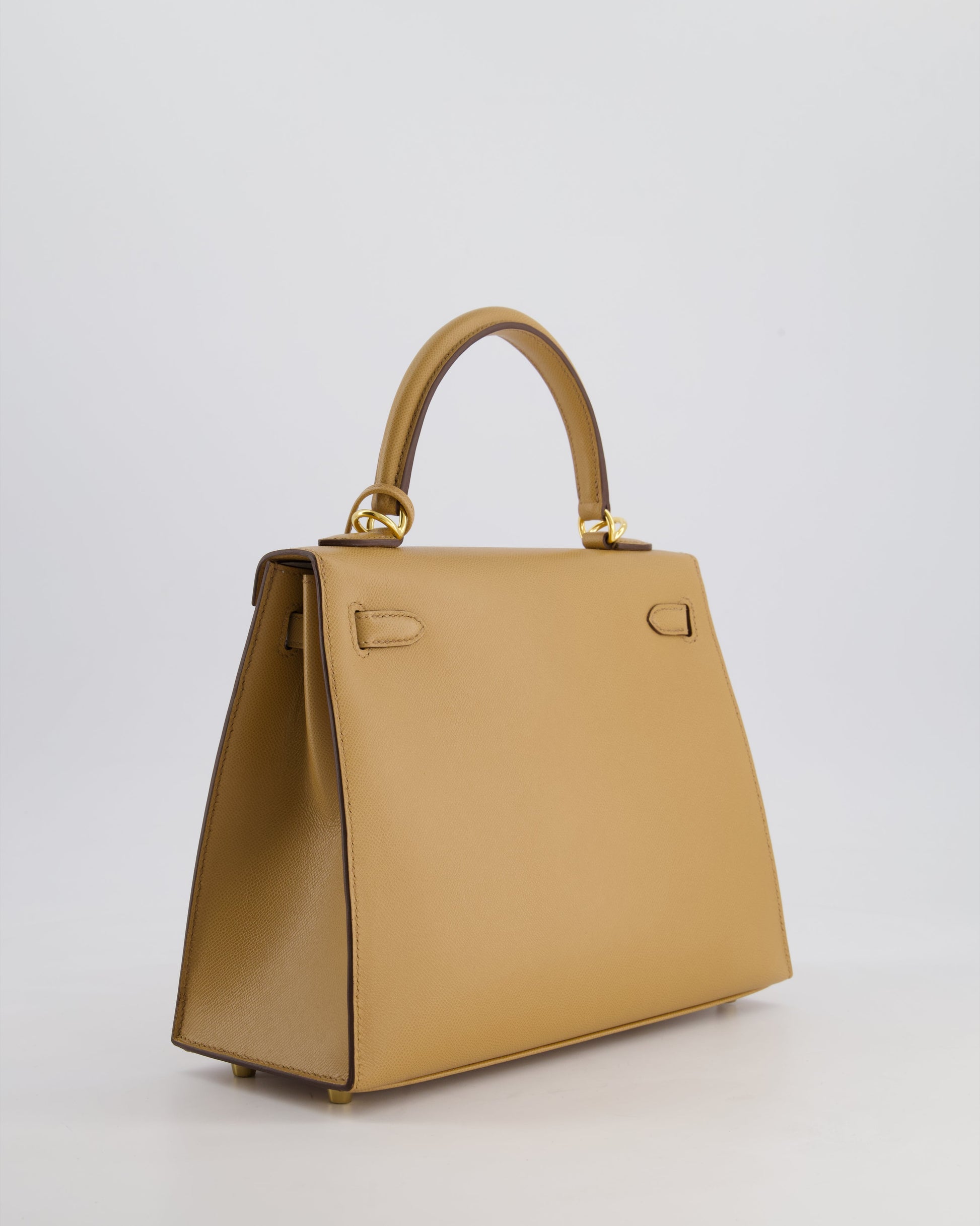 *RARE* Hermès Verso Kelly Sellier 25cm Bag in Biscuit Madame Leather, Blanc Interior with Gold Hardware