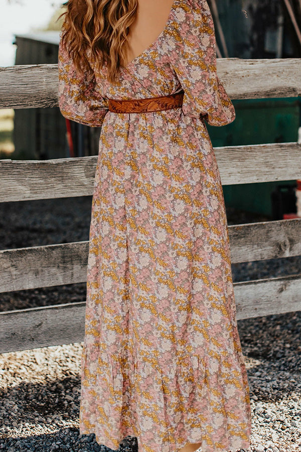 Pretty Floral Print Square Neck Ruffle Dress