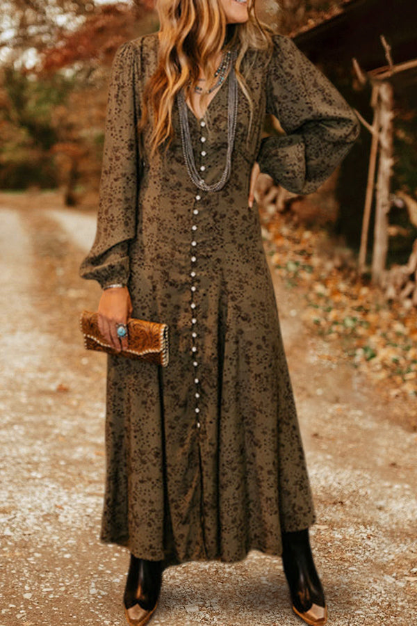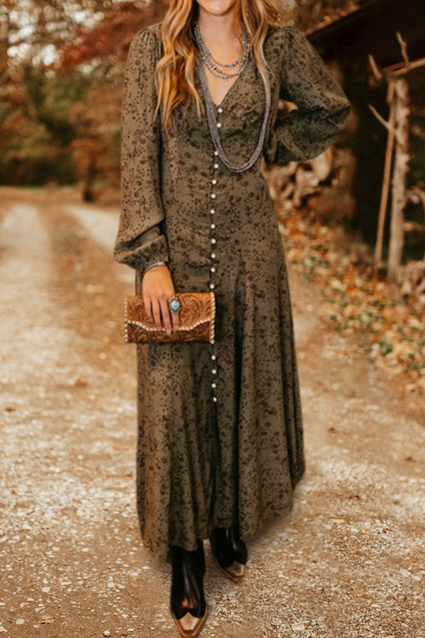 Pretty Floral Print V-Neck Bell Sleeve Dress