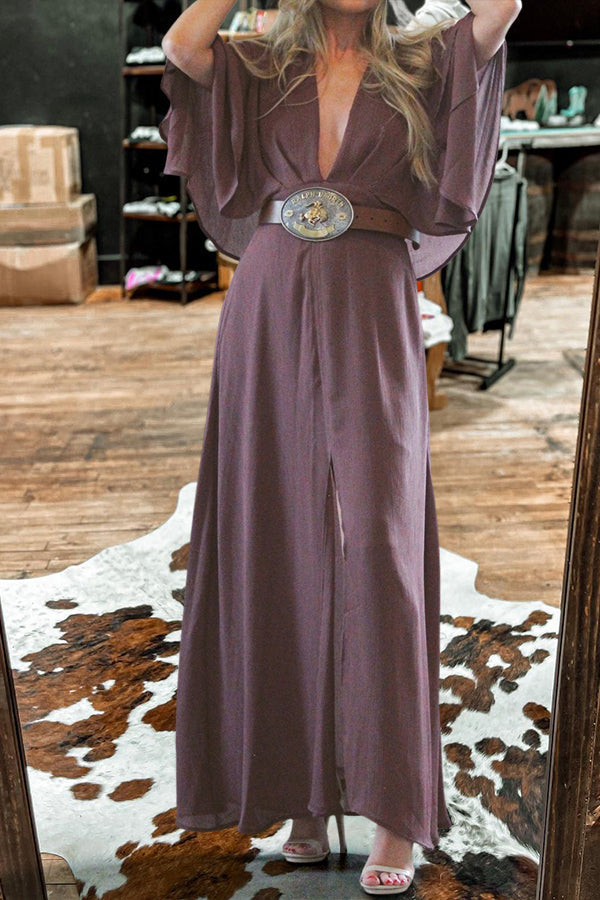 Beautiful Deep V-Neck Flowy Sleeves Leg Slit Dress