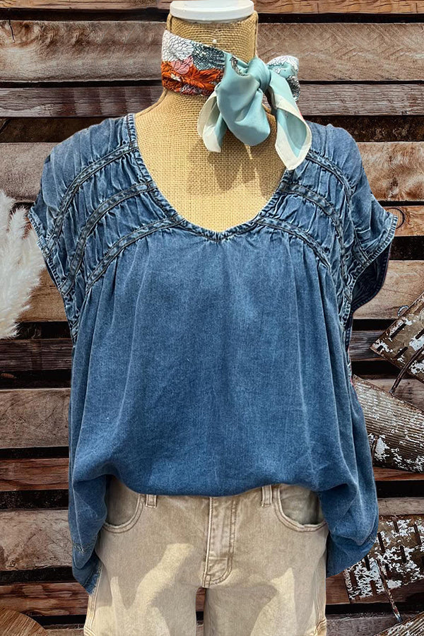 We're glad you've clicked on our new western shirt as we're really into its chic vibes! The v neck and cap sleeve cut make this a great choice for any stylish girl.