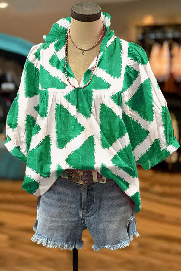 Classic Geometric Print Puff Sleeve Blouse