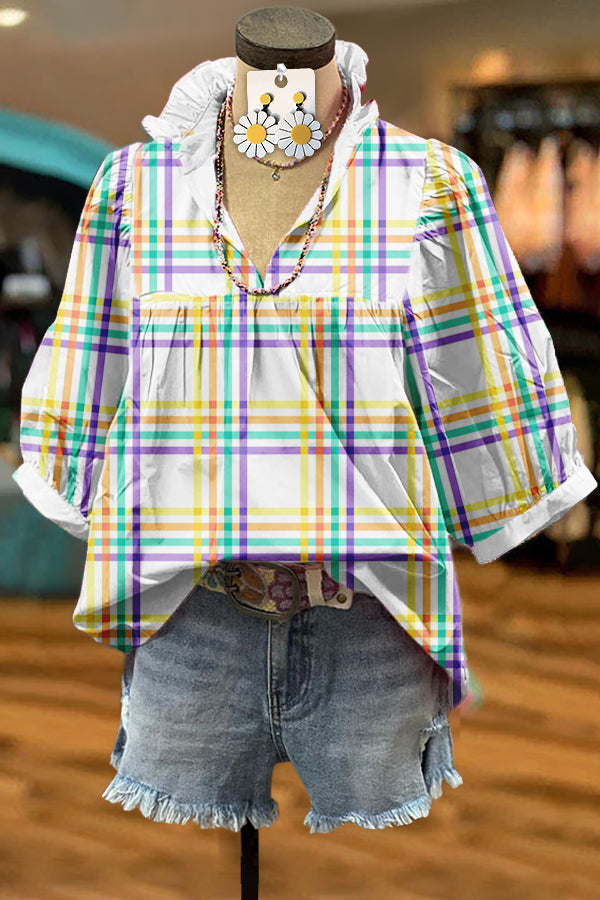 Fresh Plaid Print Puff Sleeve Blouse