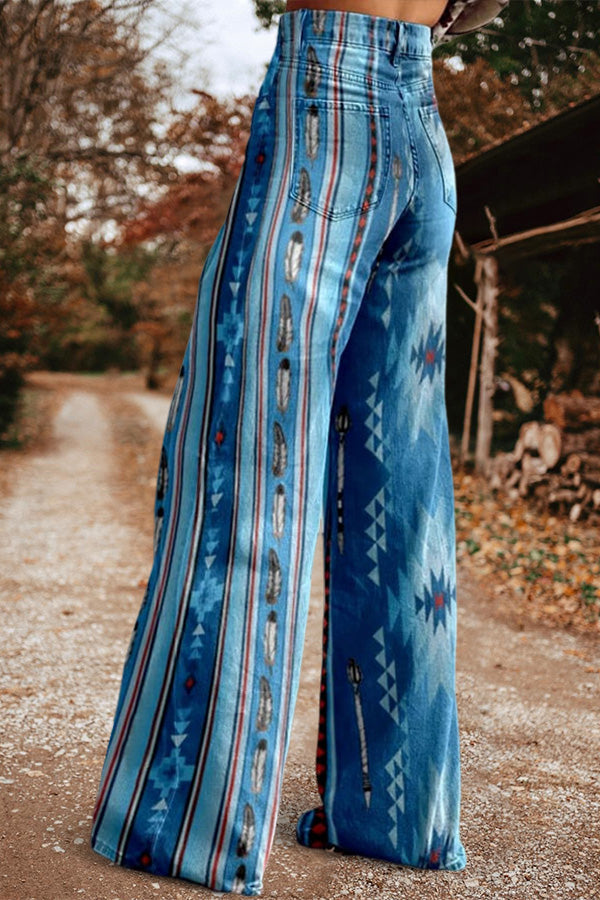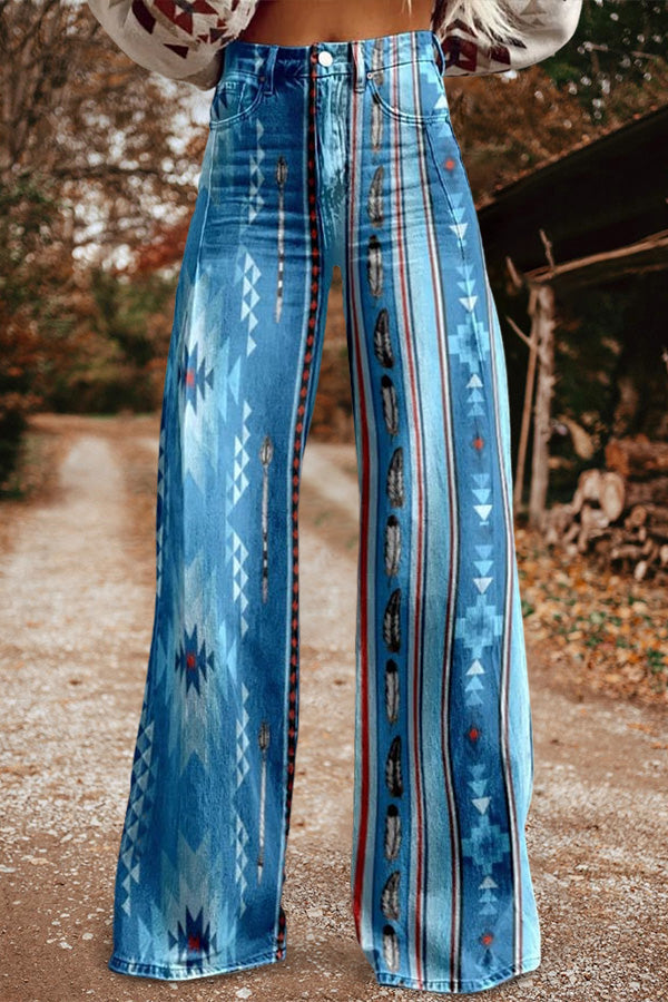 Classic Aztec Print Casual Wide Leg Pants