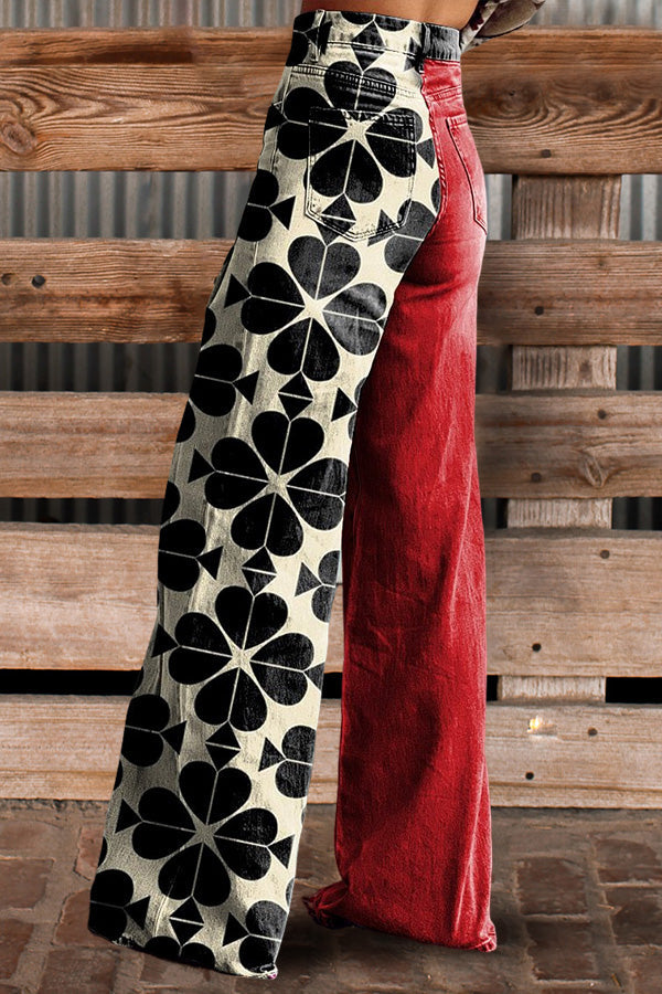 Casual Contrasting Colors Print Wide Leg Pants