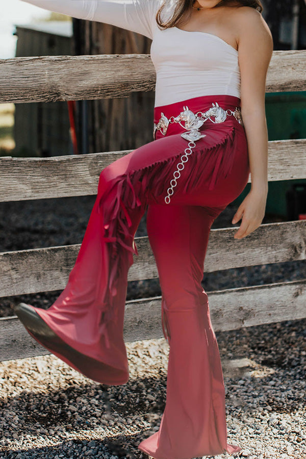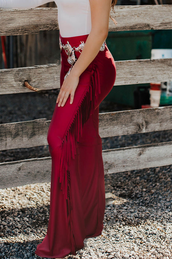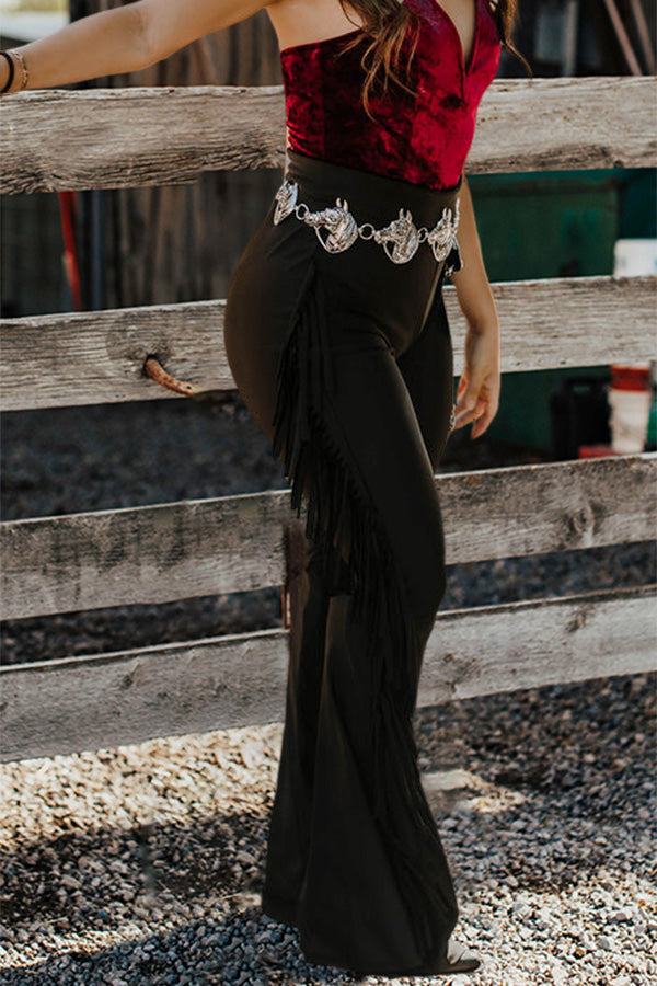Vintage Fringed Flared High Waist Pants
