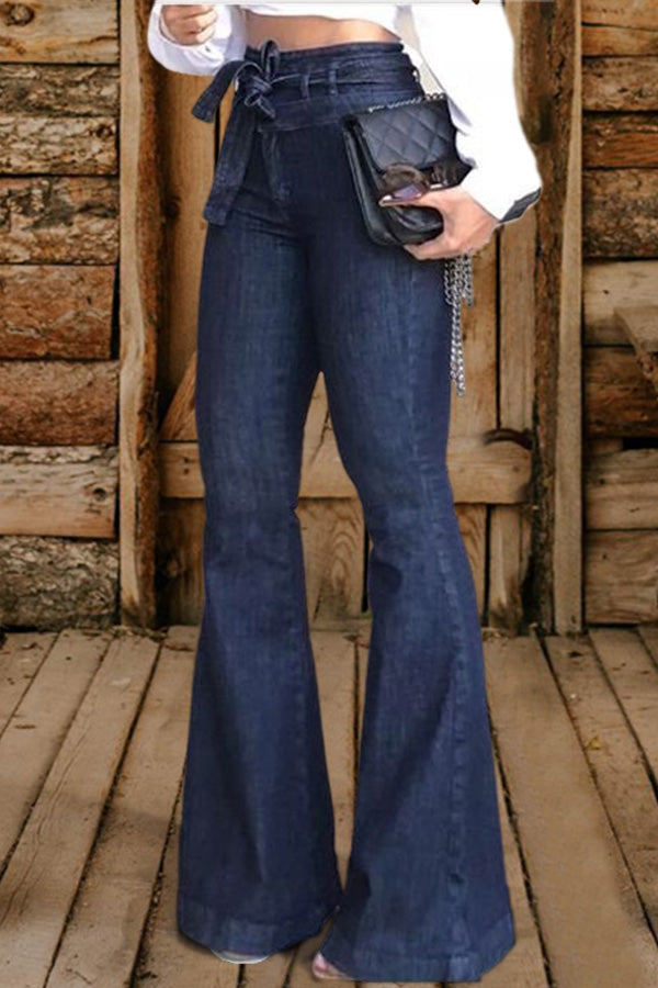 Vintage High-Waisted Lace-Up Flared Jeans