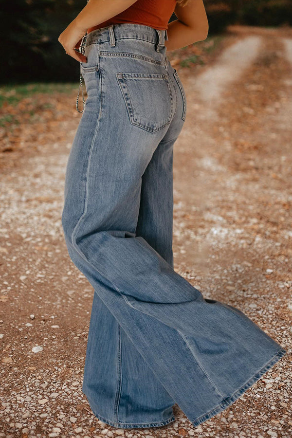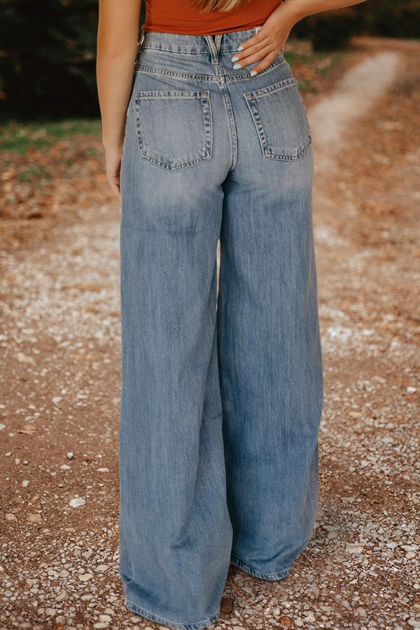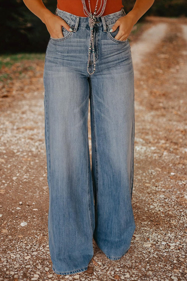 Stay on trend this season in our new retro, wide leg jeans. We especially love the bleached fabric and think this piece will be a new favorite in your closet!