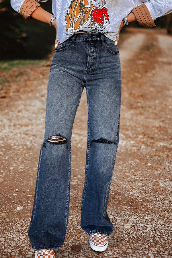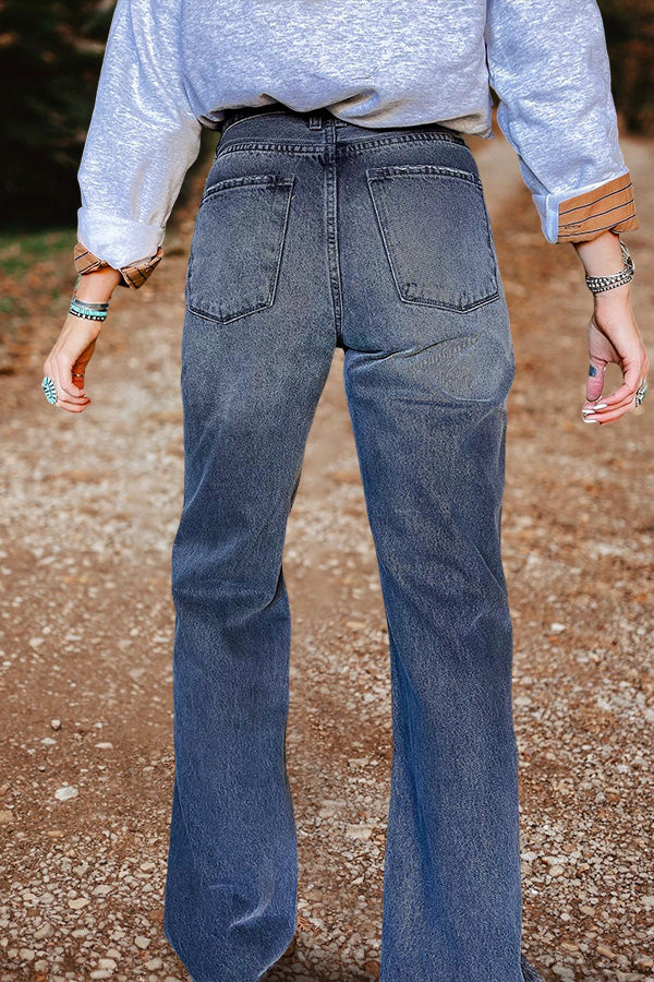 Stay on trend this season in our new retro, wide leg jeans. We especially love the bleached fabric and think this piece will be a new favorite in your closet!