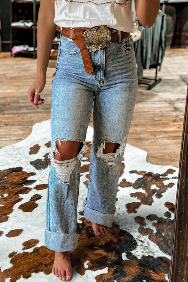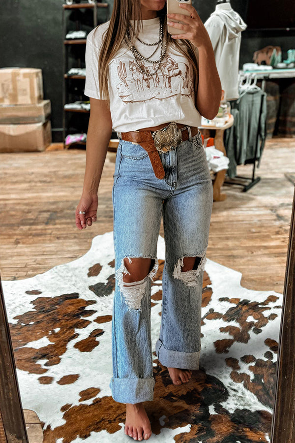 Stay on trend this season in our new retro, wide leg jeans. We especially love the bleached fabric and think this piece will be a new favorite in your closet!