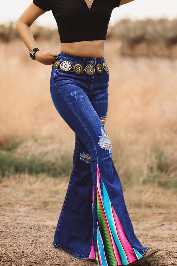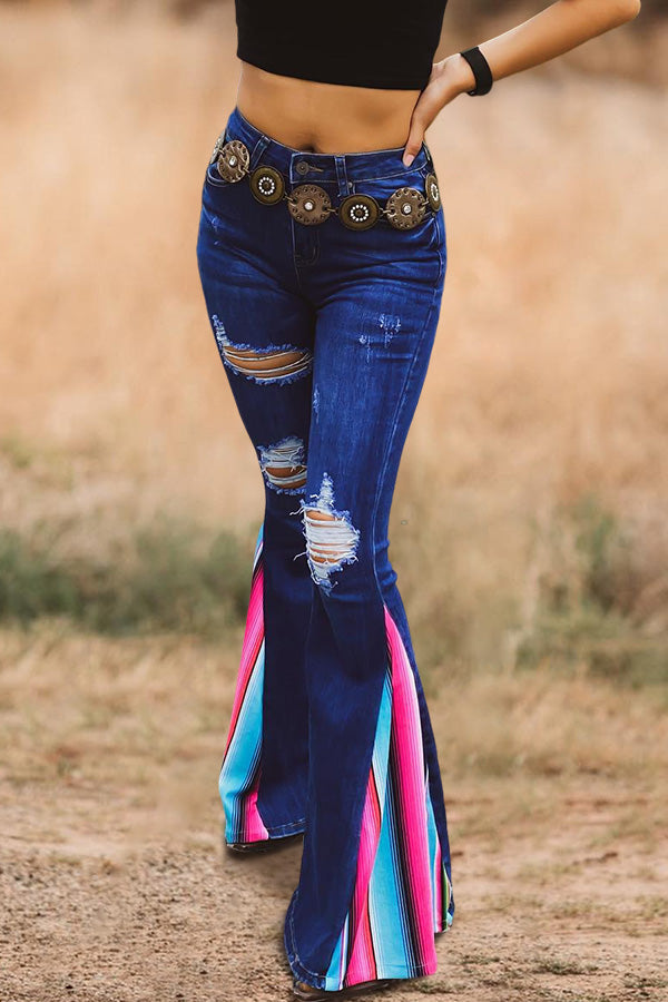 Stay on trend this season in our new retro, flared jeans. We especially love the stripe fabric and think this piece will be a new favorite in your closet!
