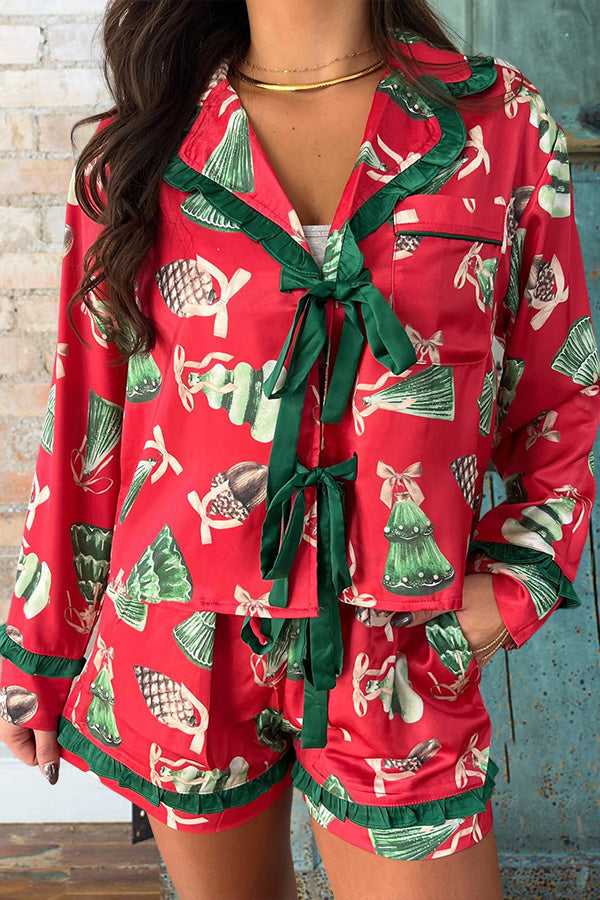 Christmas Contrasting Bow Pajama Set