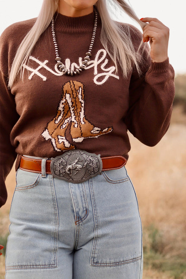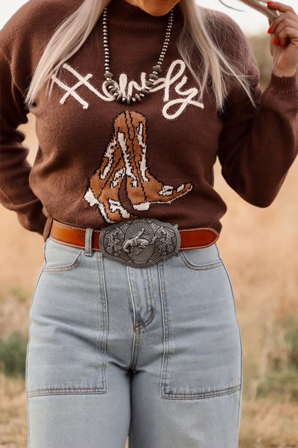 Stay on trend this season in our new casual, round neck sweater. We especially love the graphic print fabric and think this piece will be a new favorite in your closet!