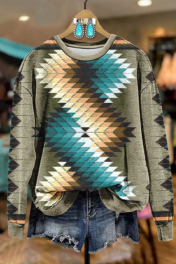Stay on trend this season in our new casual, round neck sweatshirt. We especially love the graphic print fabric and think this piece will be a new favorite in your closet!