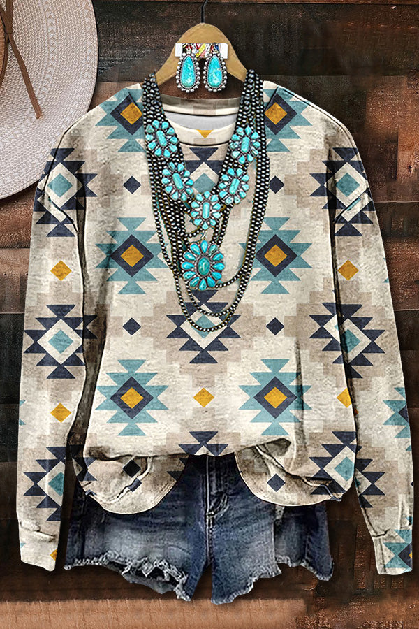 Retro Western Aztec Printed Sweatshirt