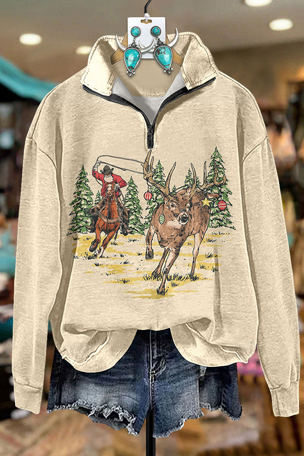 Stay on trend this season in our new casual, v neck sweatshirt. We especially love the graphic print fabric and think this piece will be a new favorite in your closet!