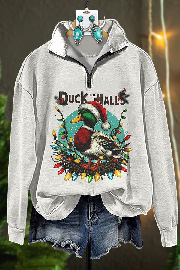 Vintage Christmas Duck Zipper Sweatshirt