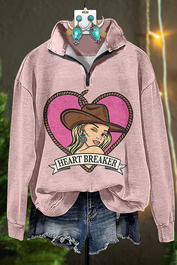 Western Valentine Heart Breaker Zipper Sweatshirt