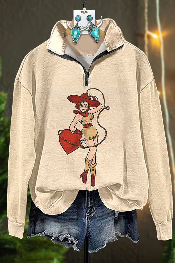 Western Valentine's Day Cowgirl Heart Zipper Sweatshirt
