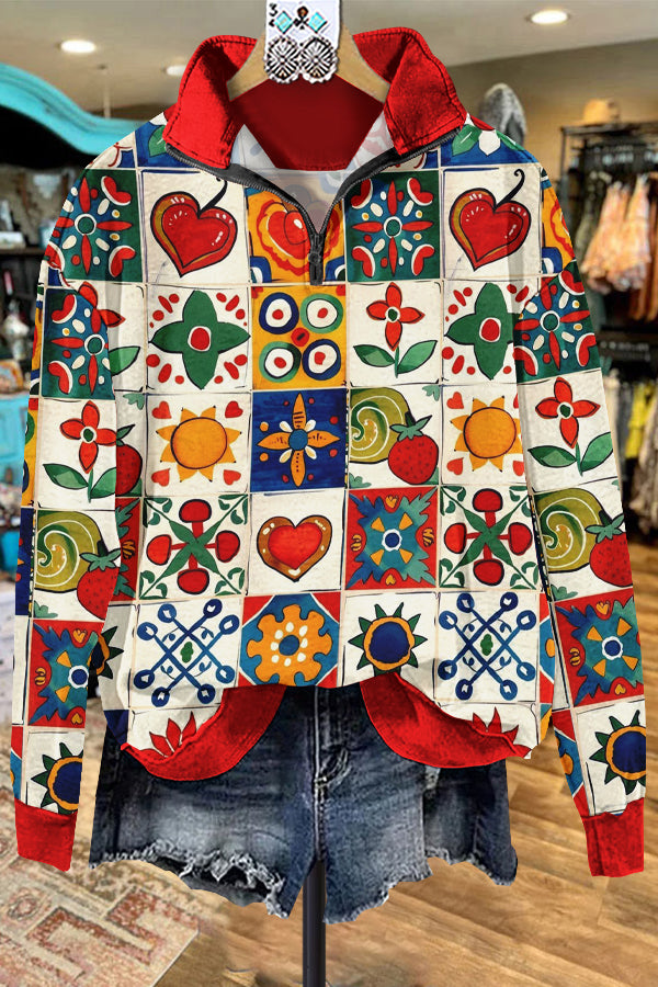 Stay on trend this season in our new casual, v neck sweatshirt. We especially love the graphic print fabric and think this piece will be a new favorite in your closet!