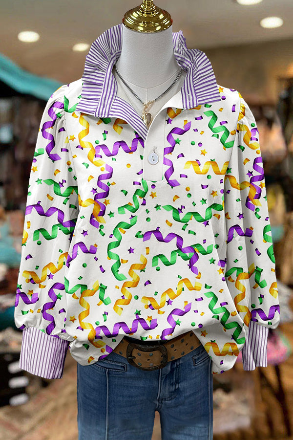 Mardi Gras Ribbon Striped Ruffle Blouse