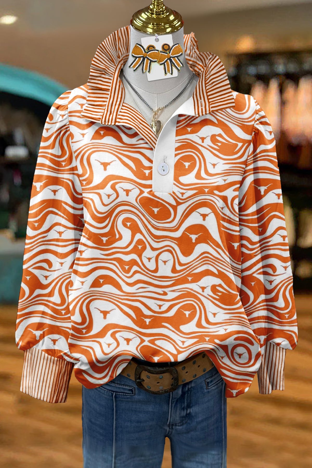Stay on trend this season in our new classic, shirt collar top. We especially love the stripe fabric and think this piece will be a new favorite in your closet!