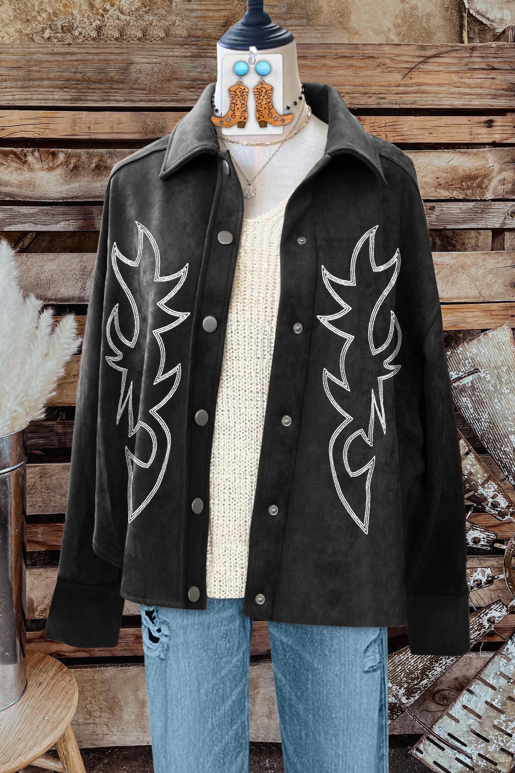 We're glad you've clicked on our new leisurwear jacket as we're really into its classic vibes! The shirt collar and long sleeve cut make this a great choice for any stylish girl.