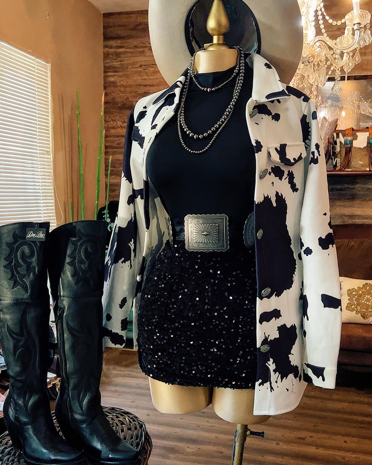 Cow pattern mid-length Suede suit jacket- white&black