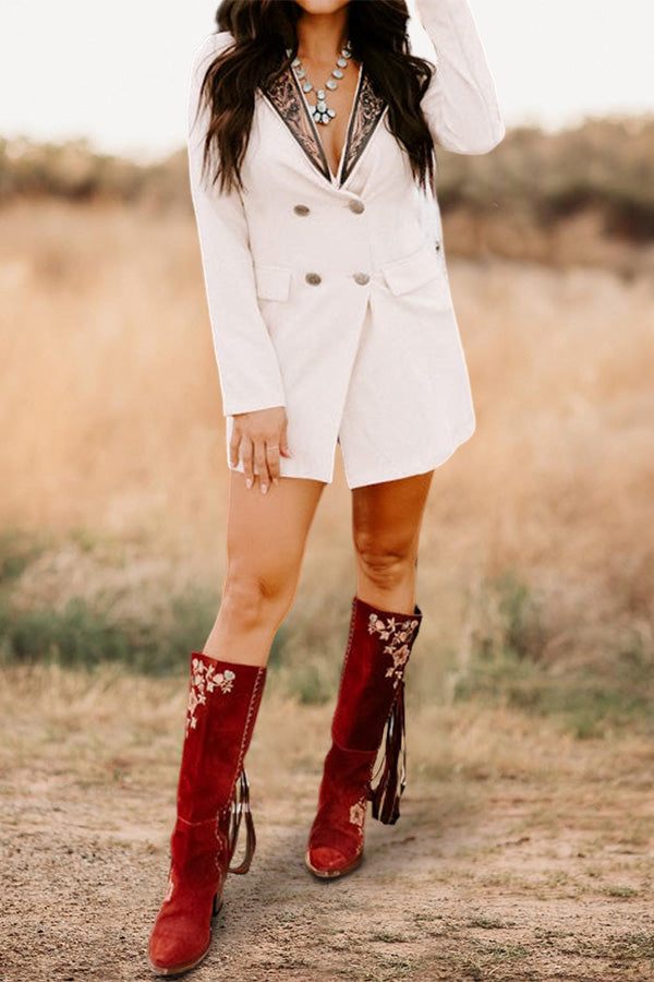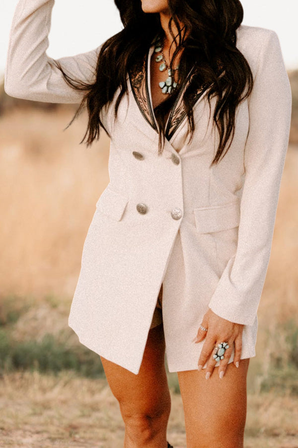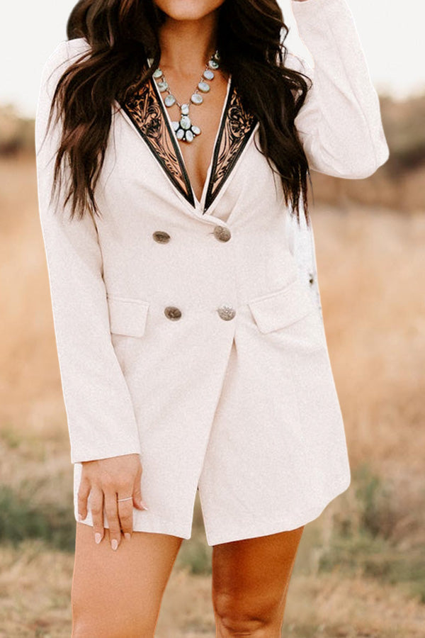 Stay on trend this season in our new pretty, lapel dress. We especially love the abstract print fabric and think this piece will be a new favorite in your closet!