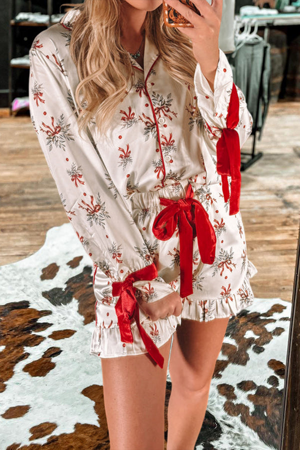 Beautiful Christmas Print Long Sleeve Satin Pajama Set
