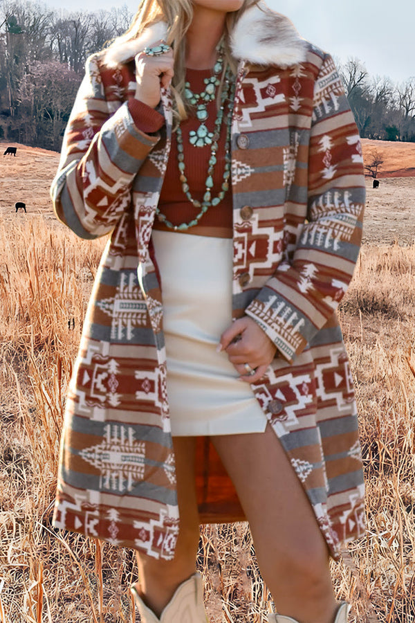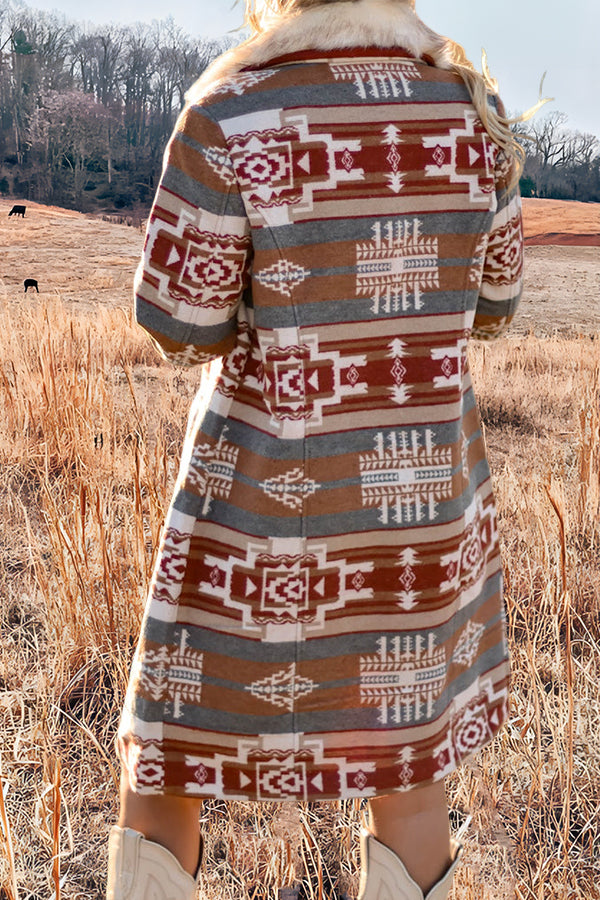 Vintage Western Aztec Printed Windbreaker (No Fur Collar)