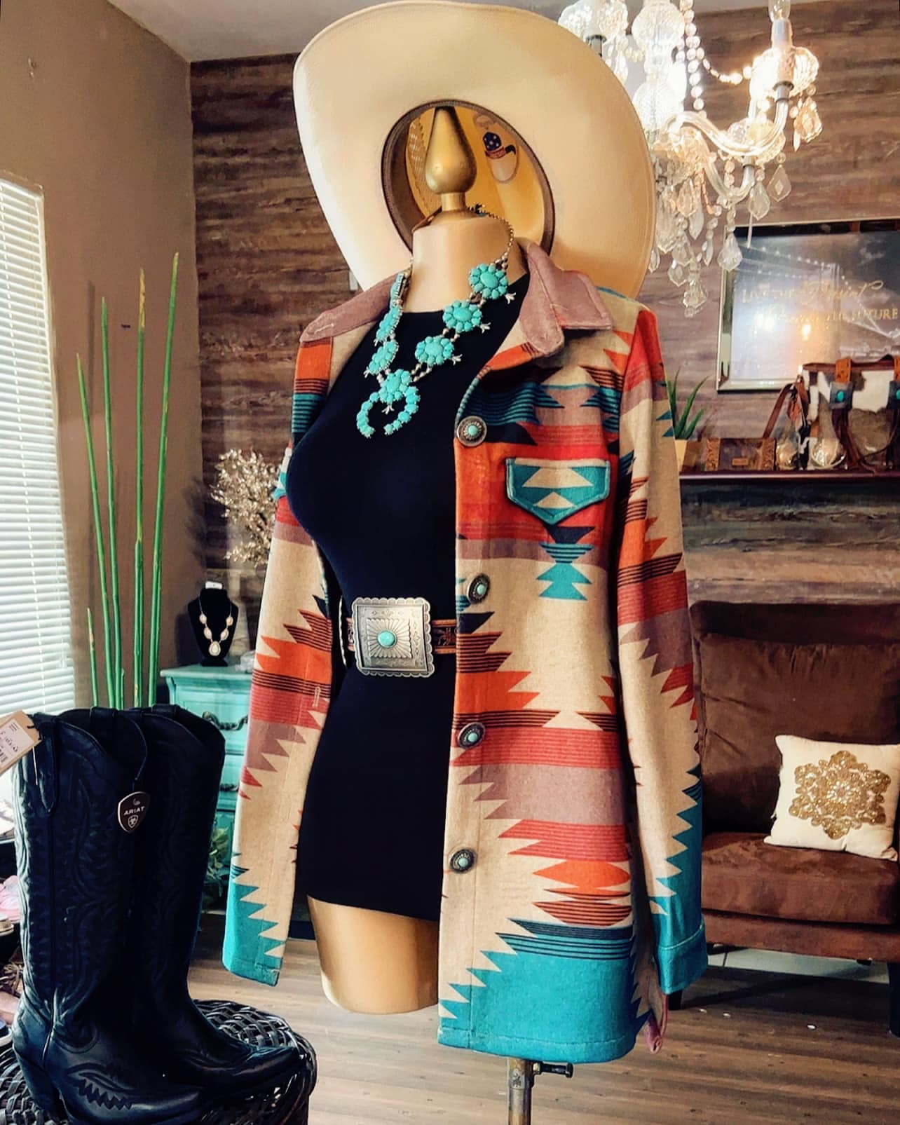 Western Cactus 🌵 Coat & Cammel Blazer Aztec Print Jacket