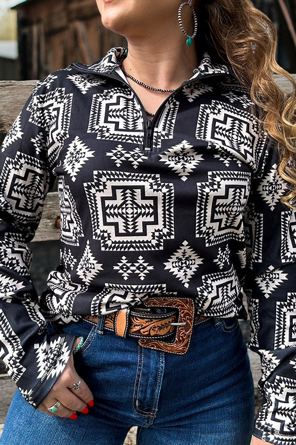 Retro Western Aztec Print Zip-Up Sweatshirt