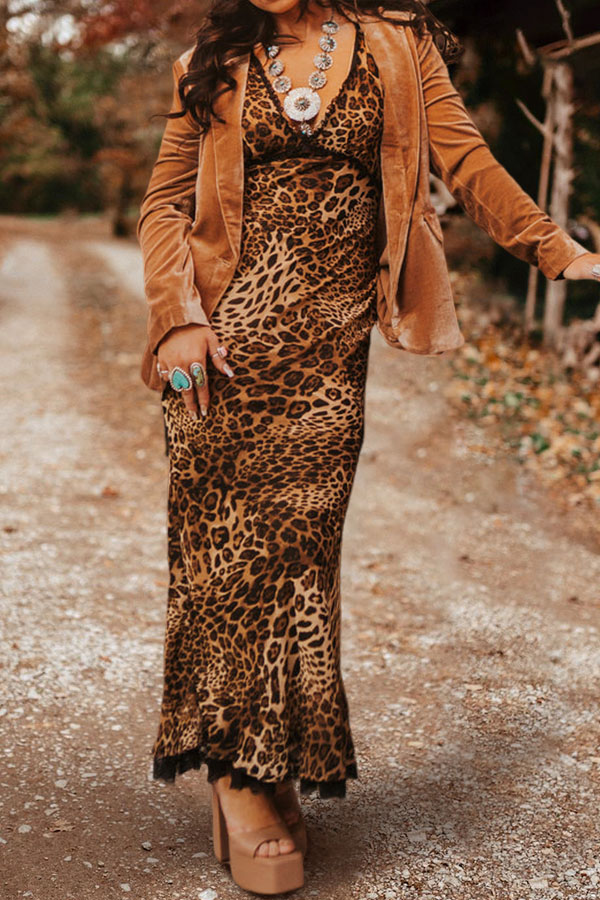 Pretty Leopard Print V Neck Dress