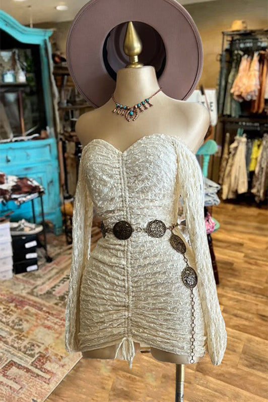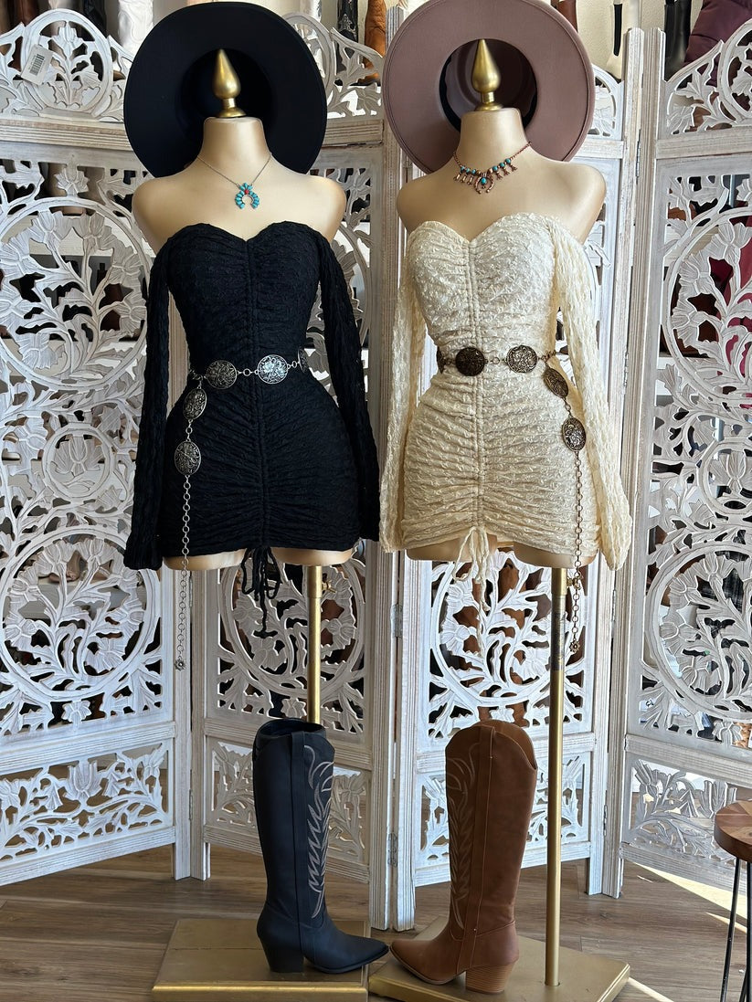 Lace Ruched Mini Dress(2 color)