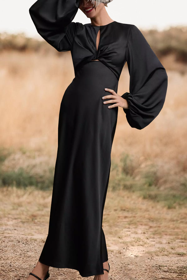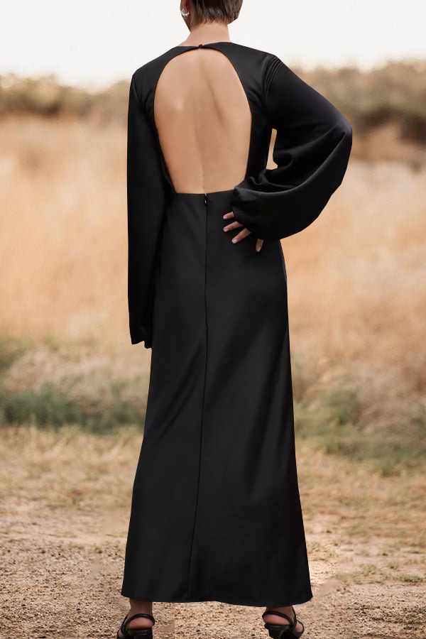 Elegant Backless Puff Sleeves Long Sleeve Dress