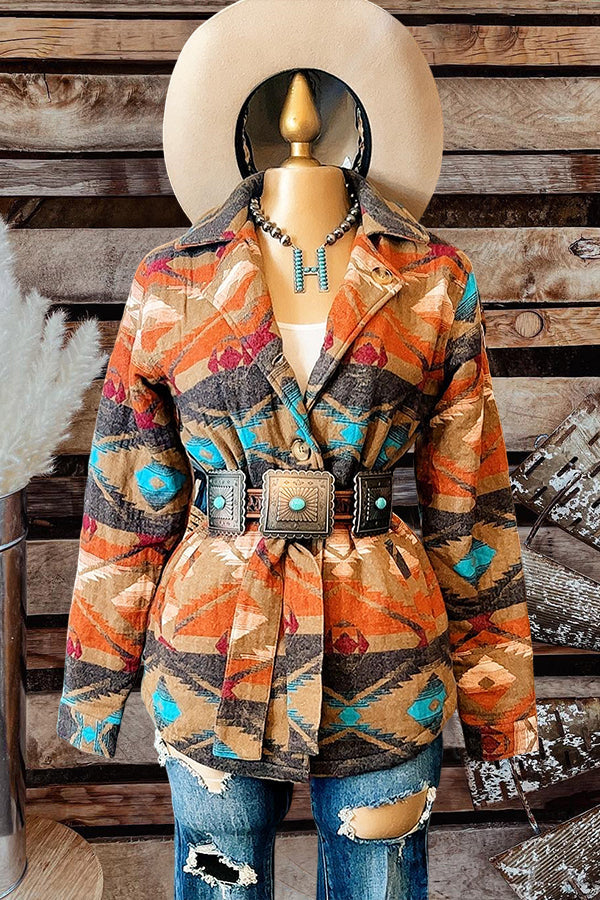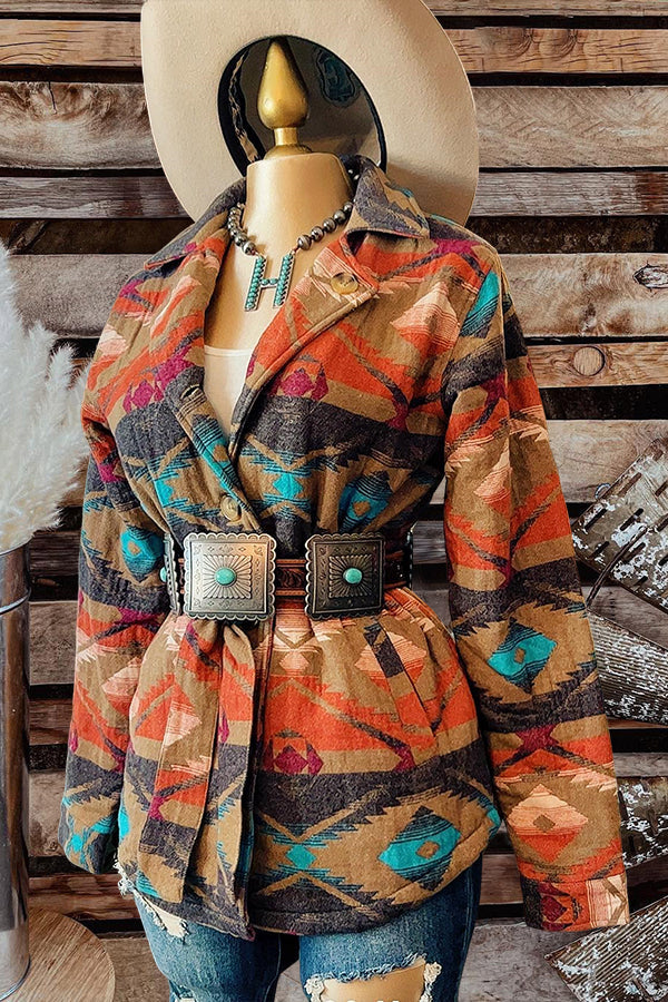 Stay on trend this season in our new retro, lapel jacket. We especially love the abstract print fabric and think this piece will be a new favorite in your closet!