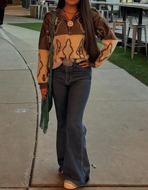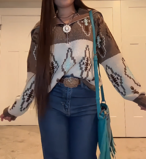 Vintage Western Aztec Zip-Up Sweater