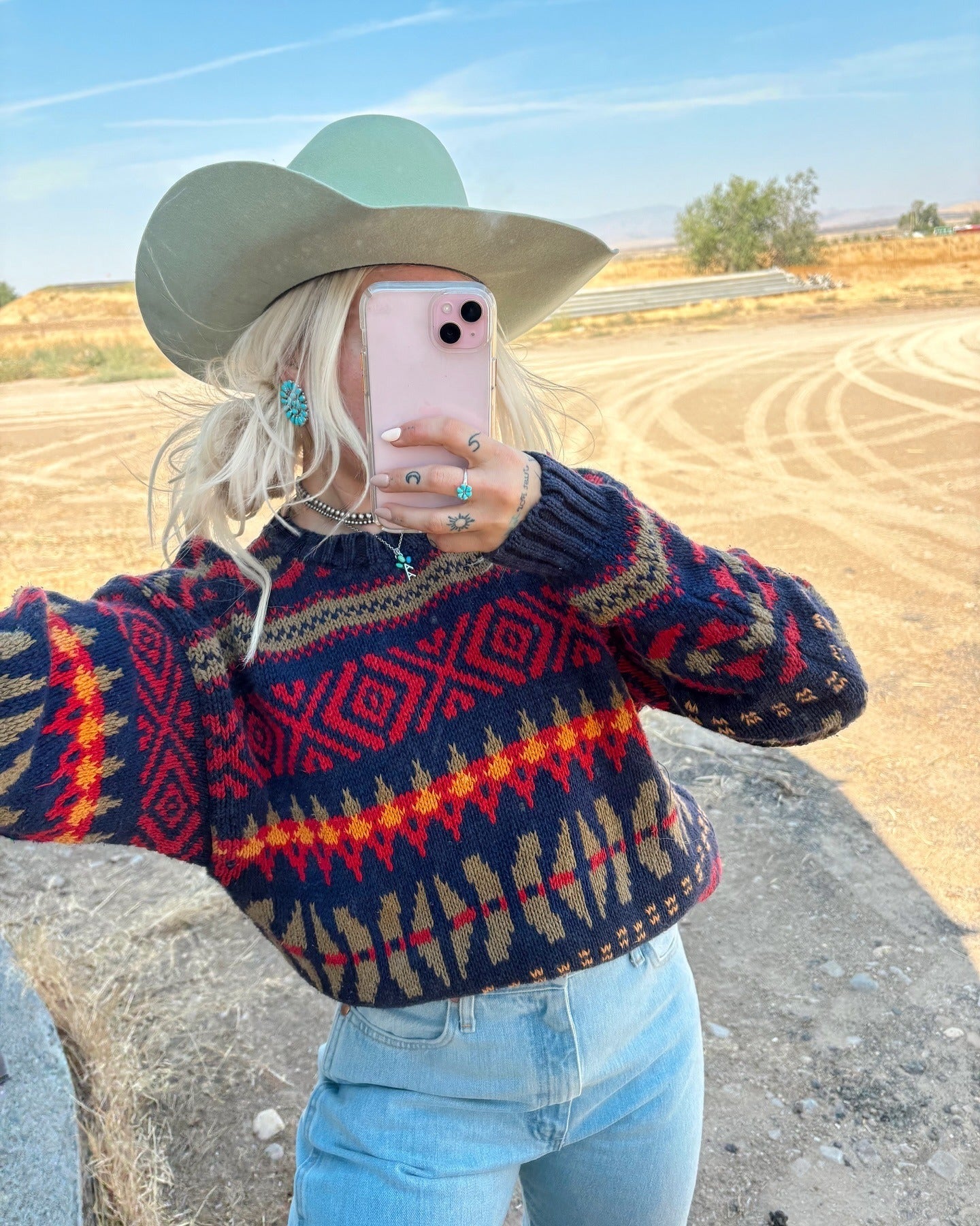 Western Vintage Aztec Pattern Zip Sweater