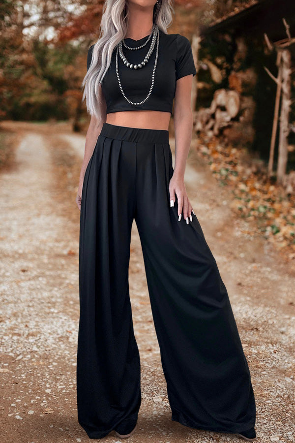 Stay on trend this season in our new retro, wide leg set. We especially love the solid color fabric and think this piece will be a new favorite in your closet!