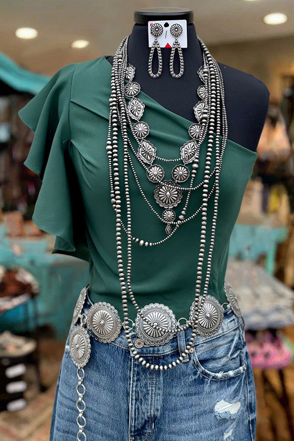 Stay on trend this season in our new sexy, oblique collar top. We especially love the solid color fabric and think this piece will be a new favorite in your closet!