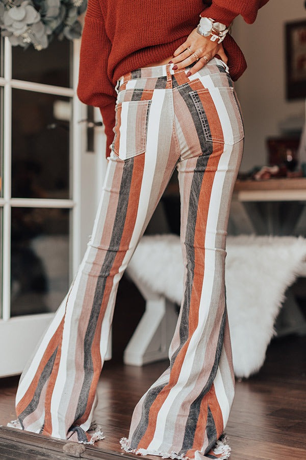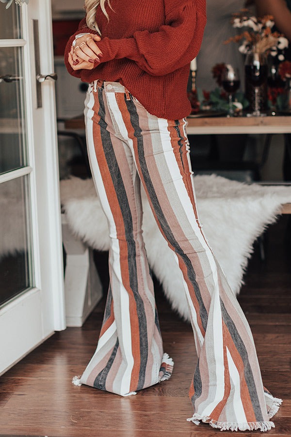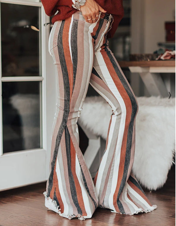 Stay on trend this season in our new classic, flared pants. We especially love the striped fabric and think this piece will be a new favorite in your closet!