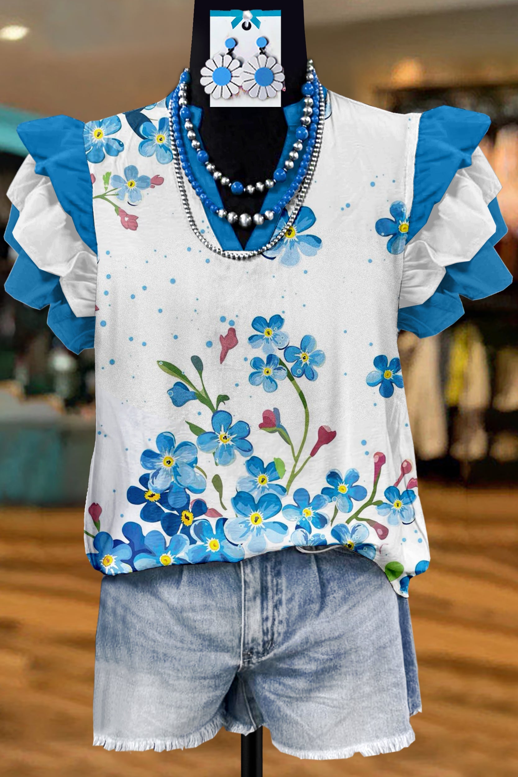 Classic Floral Print Fly Sleeve Blouse