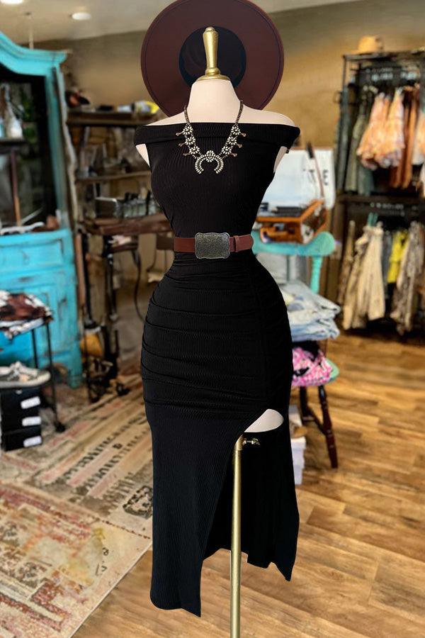 Stay on trend this season in our new casual, off shoulder dress. We especially love the solid color fabric and think this piece will be a new favorite in your closet!