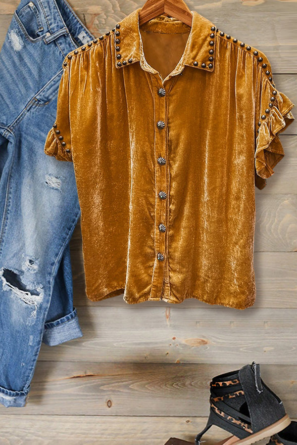 Metal Buttons Velvet Top