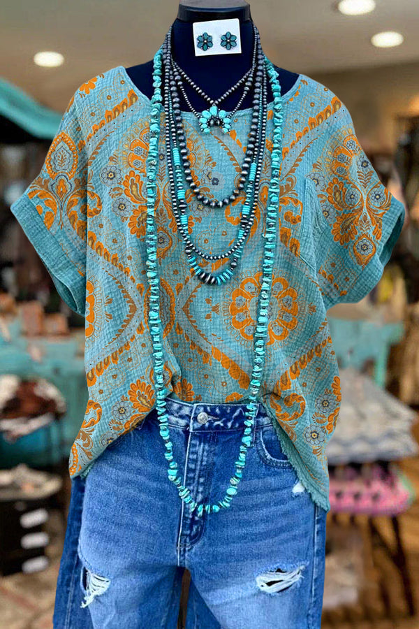 Textured Contrasting Printed Top