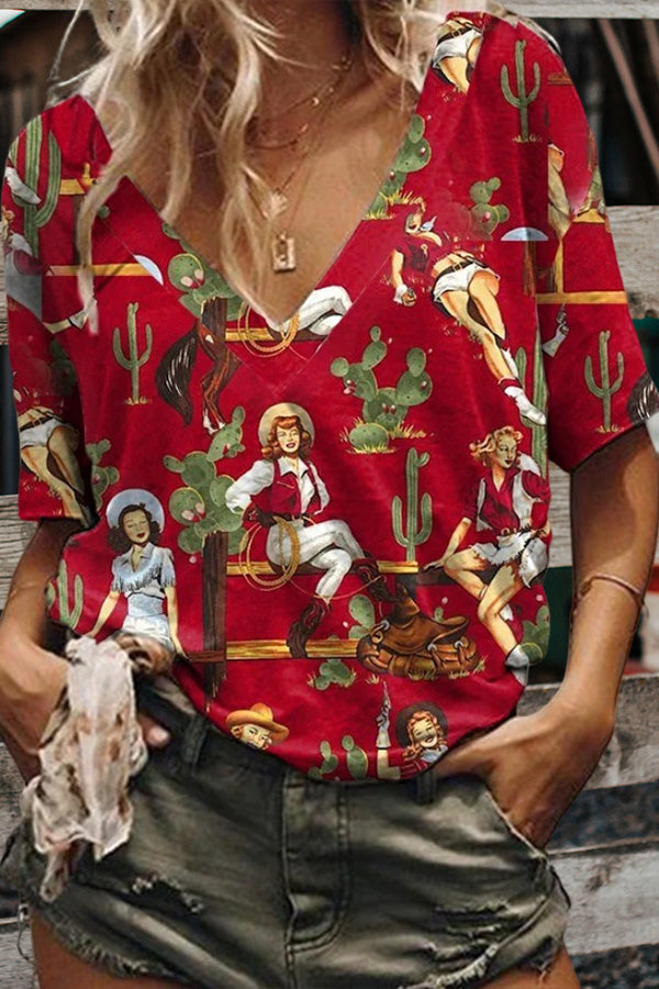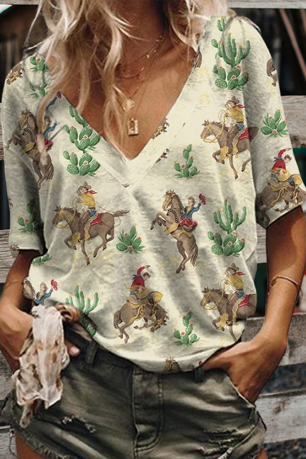 Stay on trend this season in our new pretty, v neck t-shirt. We especially love the abstract print fabric and think this piece will be a new favorite in your closet!