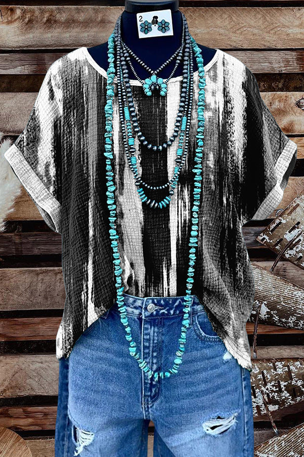 Retro Simple Printed Crew Neck Top